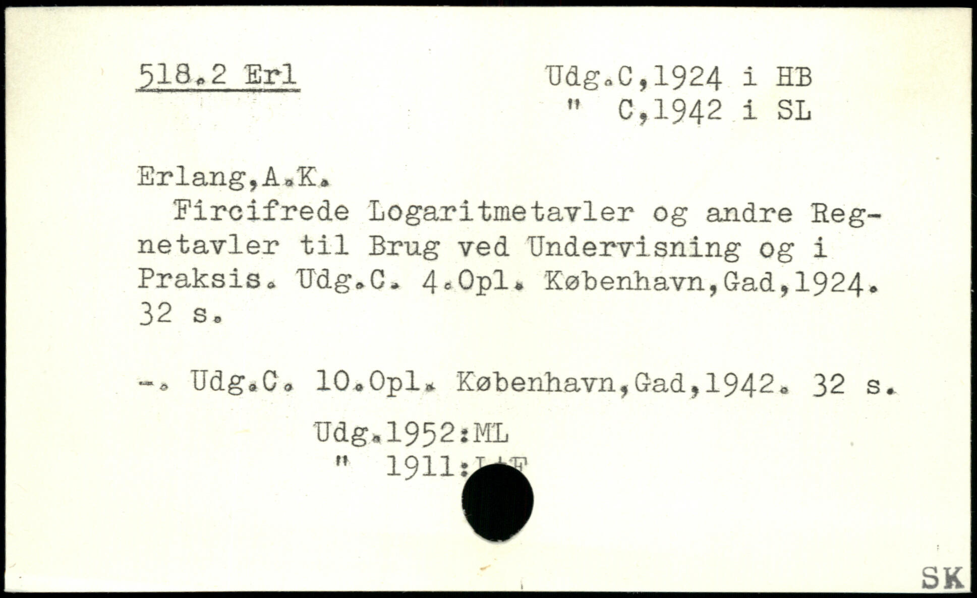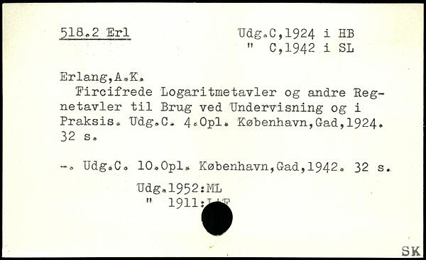 fircifrede Logaritmetavler og andre Reg-netavler til Brug ved Undervisning og i Praksis, UdgåC. 4,0pl.
