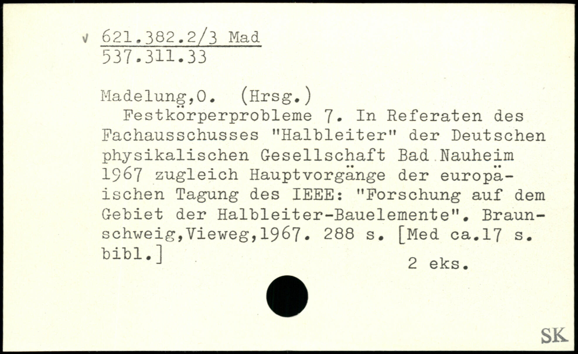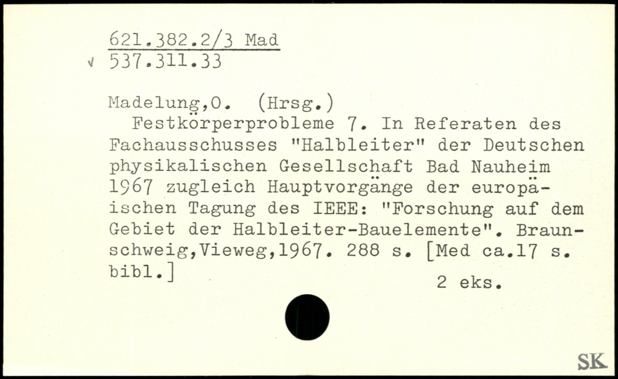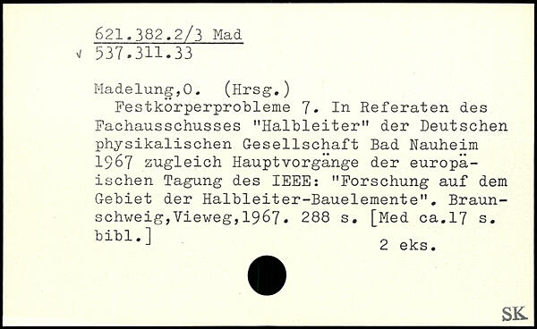 Festkorperprobleme 7. In Referaten des Fachausschusses "Halbleiter" der Deutschen physikalischen Gesellschaft Bad Nauheim 1967 zugleich Hauptvorgange der europäischen Tagung des IEEE: "Forschung auf dem Gebiet der Halbleiter-Bauelemente".