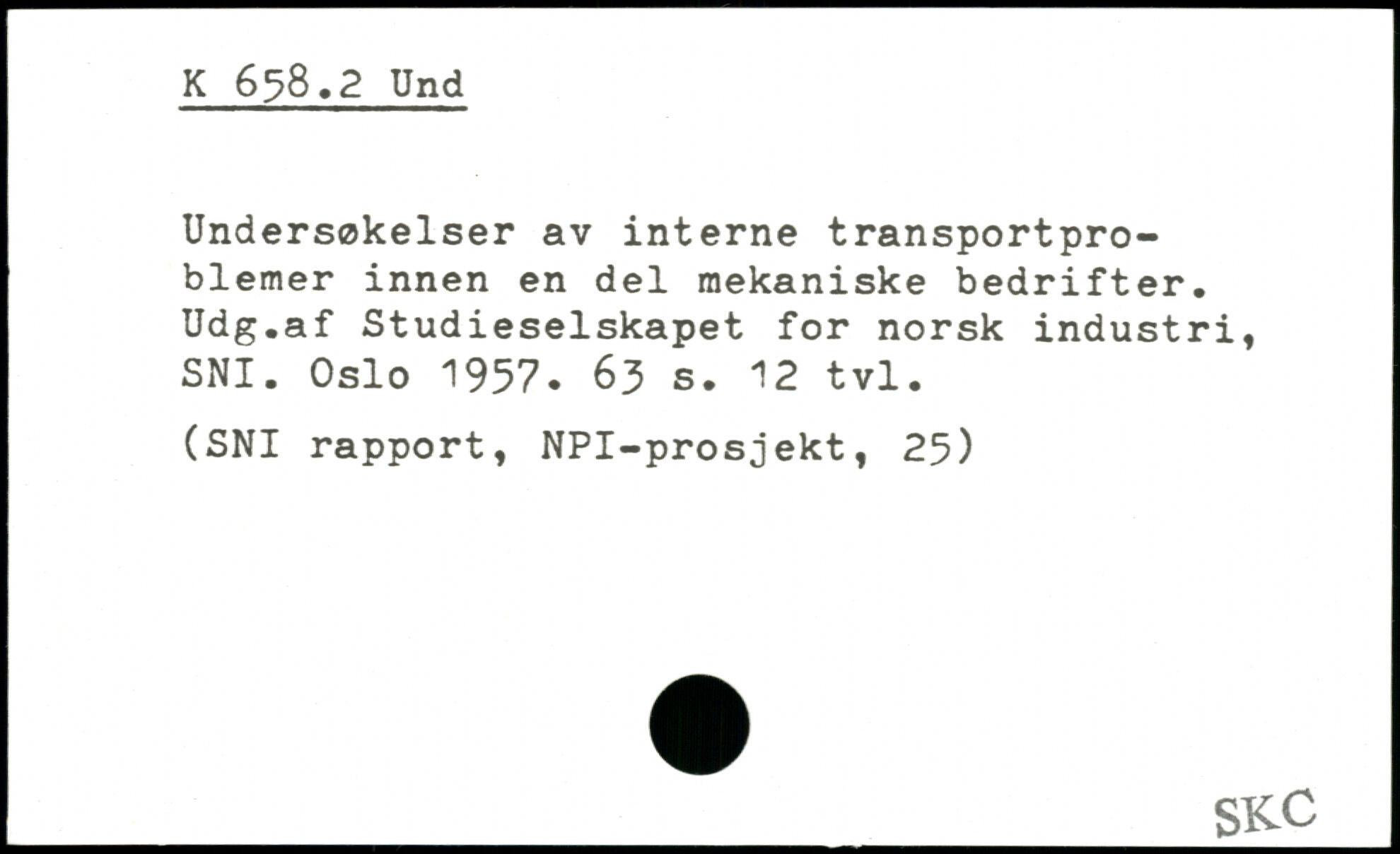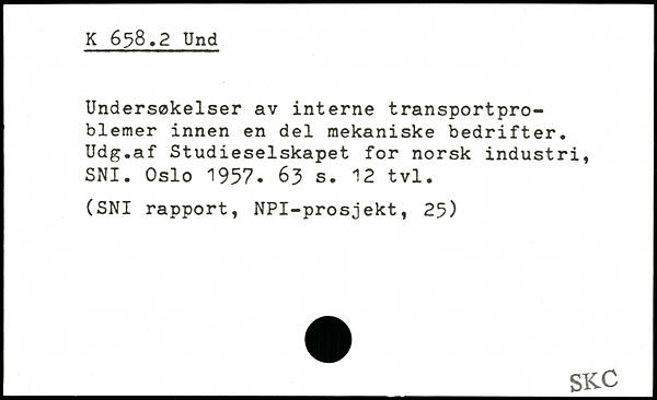 Undersøkeiser av interne transportproblemer innen en del mekaniske bedrifter. Udg.af Studieselskapet for norsk industri, SNI. Oslo 1957.