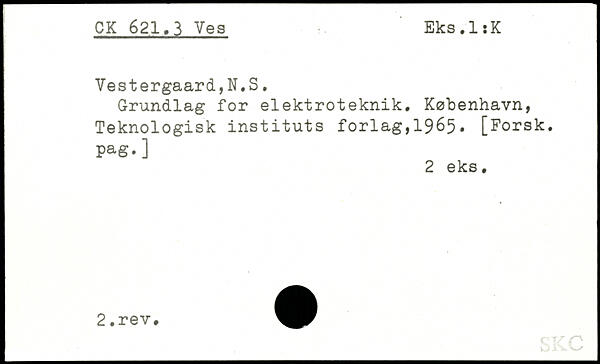 Grundlag for elektroteknik, København, Teknologisk instituts forlag,1965. [Forsk, P ag.]