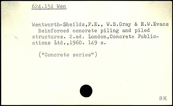 Wentworth-Sheilds,F.E., W.S.Gray & H.W.Evans Reinforced concrete piling and piled structures.