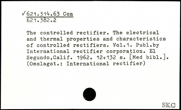 The controlled rectifier. The electrical and thermal properties and characteristics of controlled rectifiers.