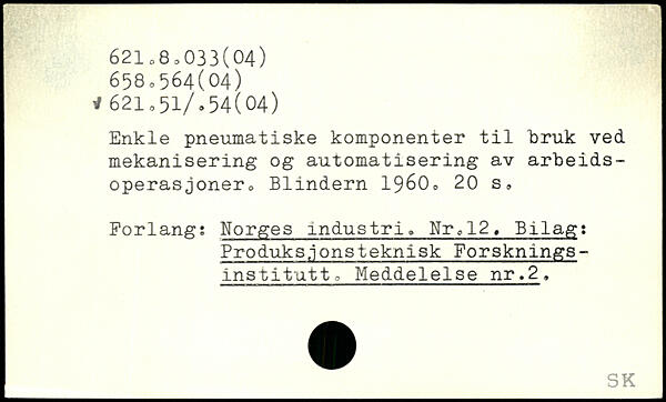 Enkle pneumatiske komponenter til bruk ved mekanisering og automatisering av arbeids-operasjoner, Blindern 1960