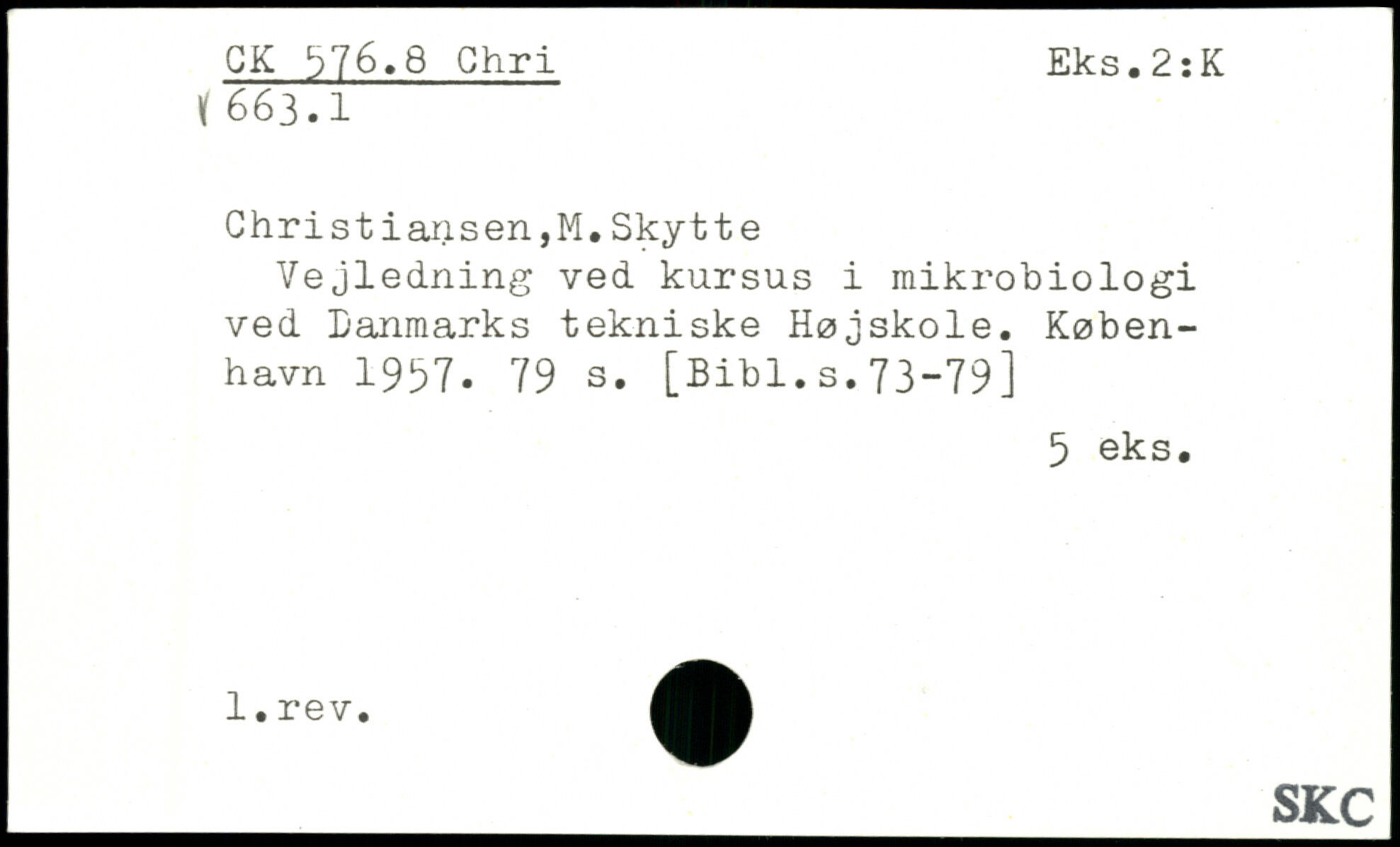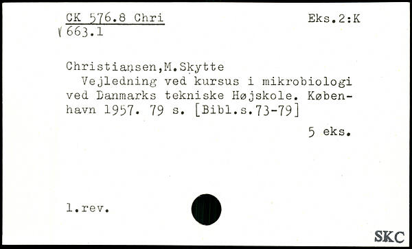 Christiansen,M.Skytte Vejledning ved kursus i mikrobiologi ved Danmarks tekniske Højskole.