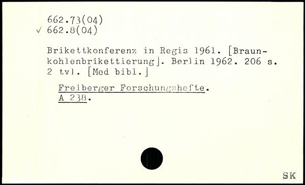 Brikettkonferenz in Regis 1961. [Braunkohl! enbrikettierung J.