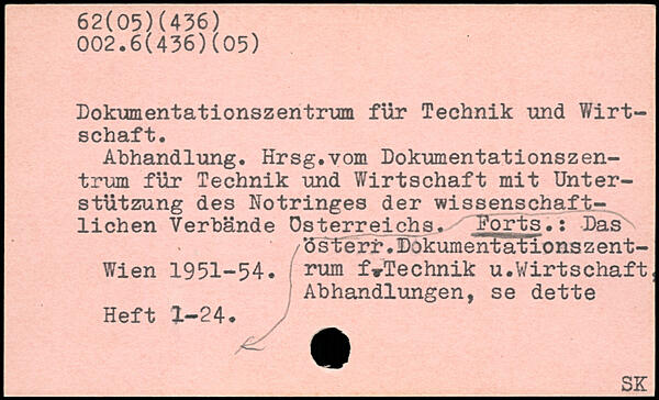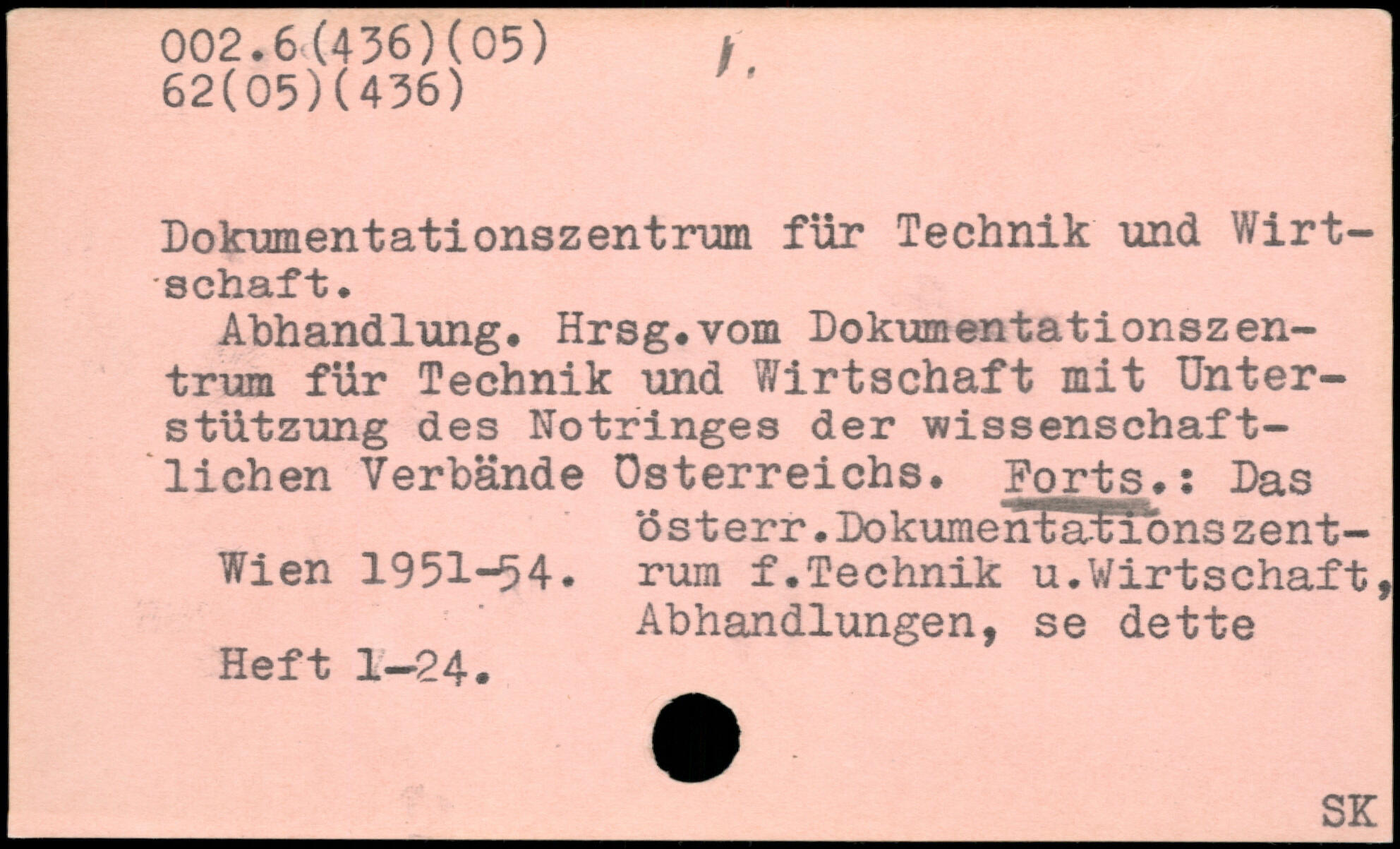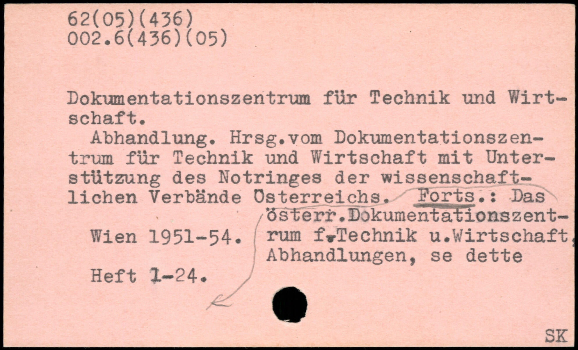 Dokumentationszentrum für Technik und Wirt-schaft. Abhandlung. Hrsg.vom Dokumentationszentrum für Technik und Wirtschaft mit Unterstützung des Notringes der wissenschaftlichen Verbände Österreichs. Ports.: Das <