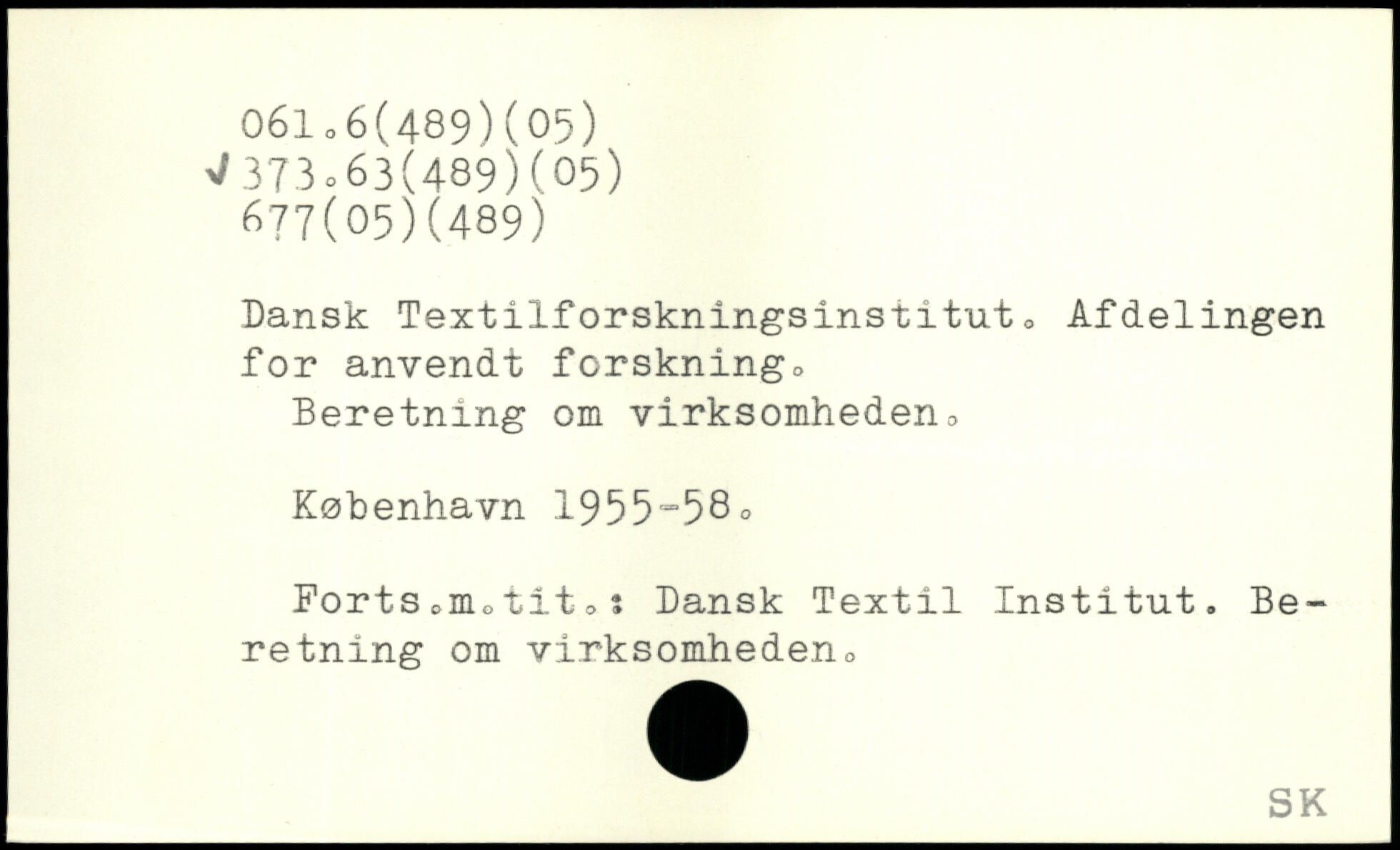 Dansk Textilforskningsinstitut. Afdelingen for anvendt forskningo Beretning om virksomheden o