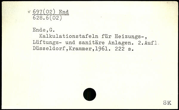 Kalkulationstafeln für Heizungs-, Lüftungs- und sanitäre Anlagen.