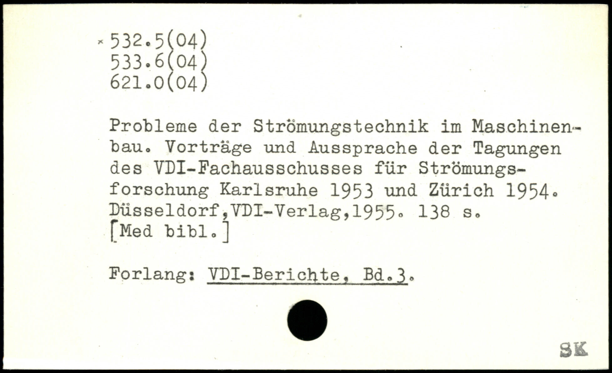 Probleme der Strömlingstechnik im Maschinenbau. Vorträge und Aussprache der Tagungen des VDI-Fachausschusses für Strömungsforschung Karlsruhe 1953 und Zürich 1954.