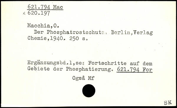 Der Phosphatrostschütz, Berlin,Verlag Chemie,1940- 250 s. Erganzungsbd.. 1, seg Fortschritte auf dem Gebiete der Phosphatierung,, 621.794 For Ogsä Mf