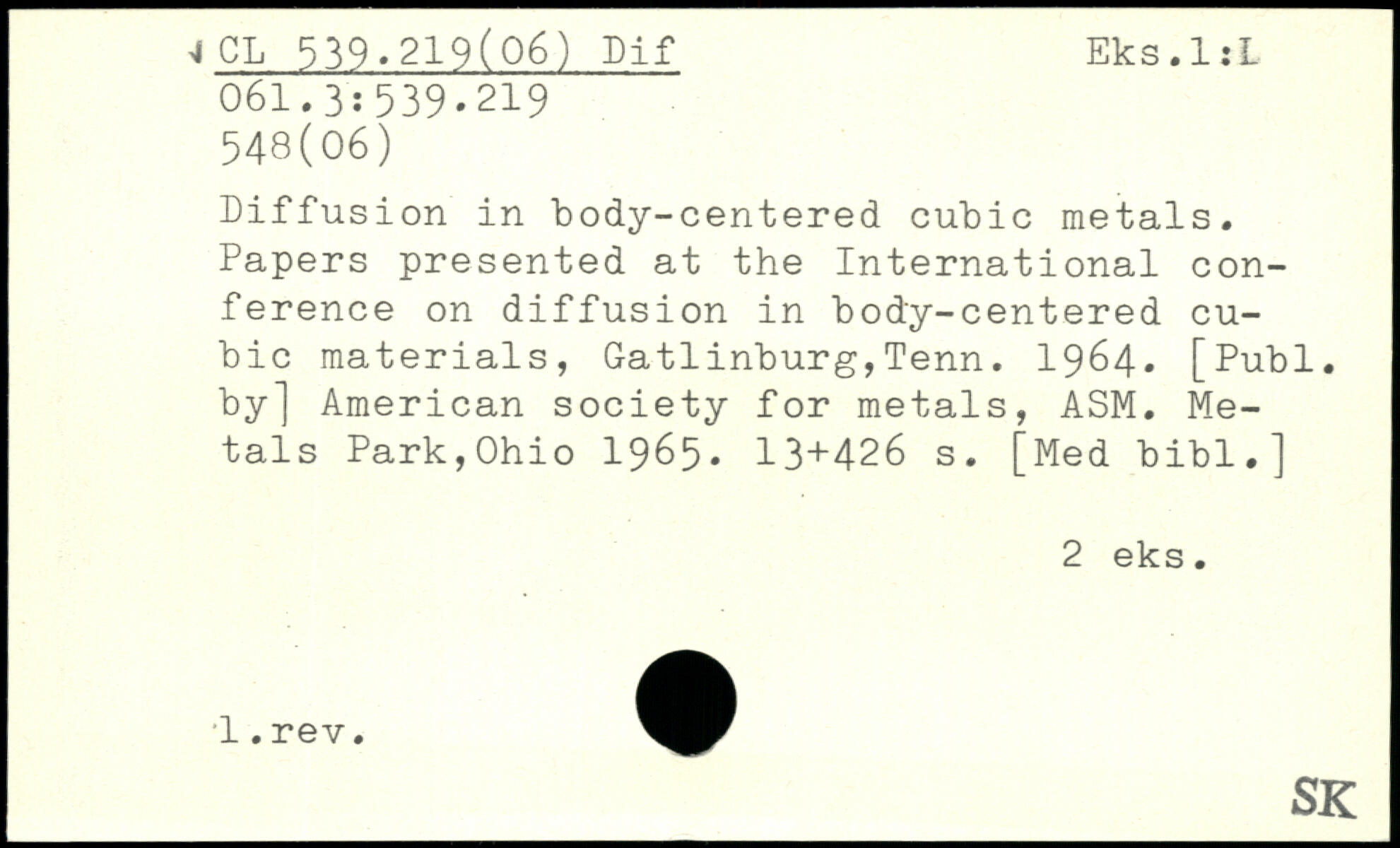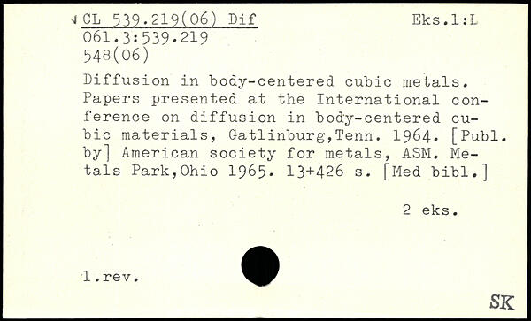 Diffusion in body-centered cubic metals. Papers presented at the International conference on diffusion in body-centered cubic materials, Gatlinburg,Tenn. 1964.