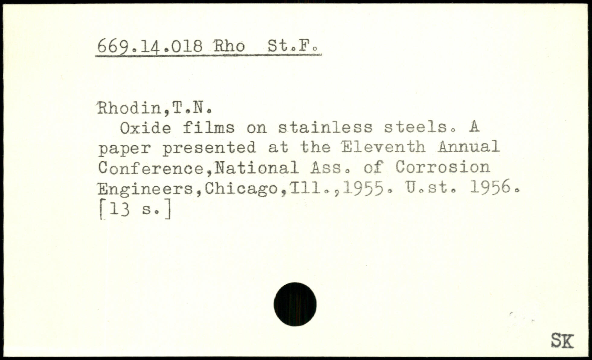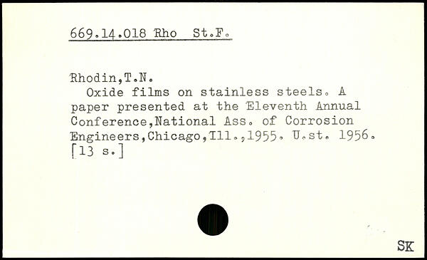 Oxide films on stainless steelso A paper presented at the Eleventh Annual Conference,National Ass, of Corrosion Engineers,Chicago,111,,1955, U,st, 1956-