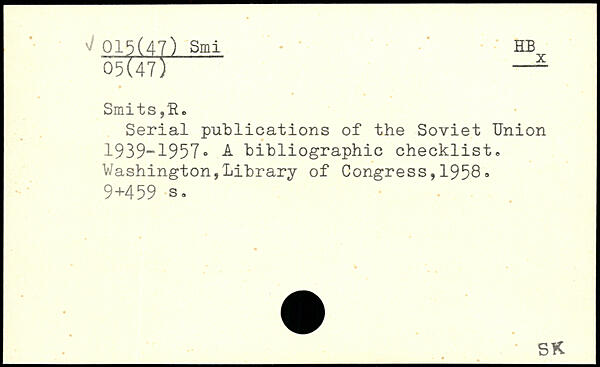 Serial publications of the Soviet Union 1939-1957, A bibliographic checklist