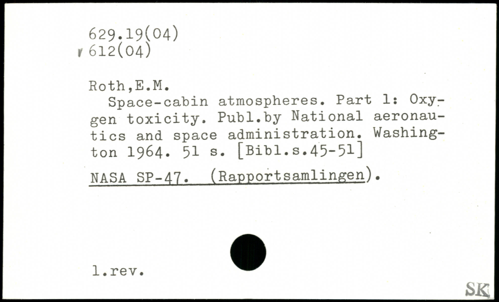Space-cabin atmospheres. Part 1: Oxygen toxicity.