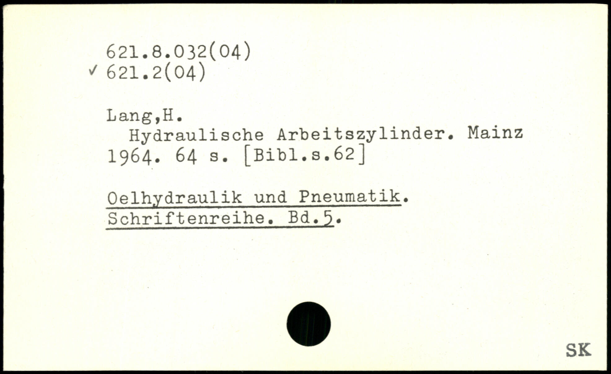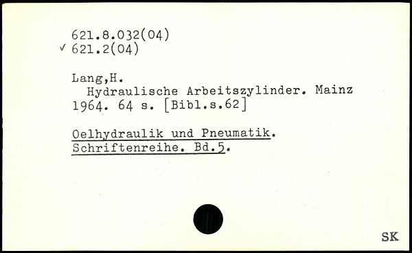 Hydraulische Arbeitszylinder. Mainz 1964.