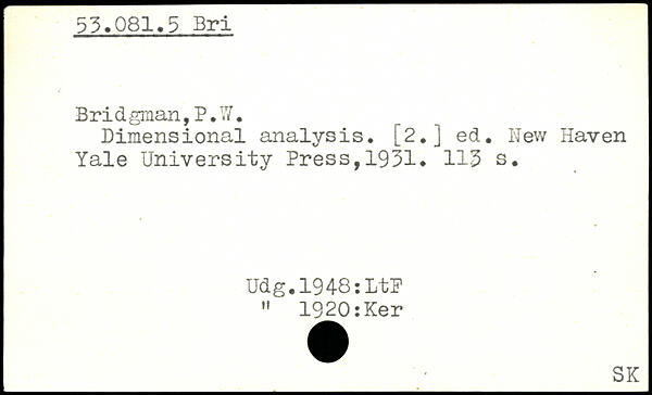 Dimensional analysis. [2.j ed. New Haven Yale University Press,1951.