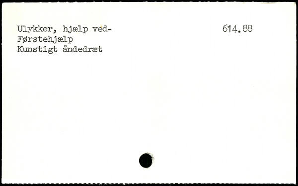 Ulykker, hjælp ved- 614.88 Førstehjælp Kunstigt åndedræt