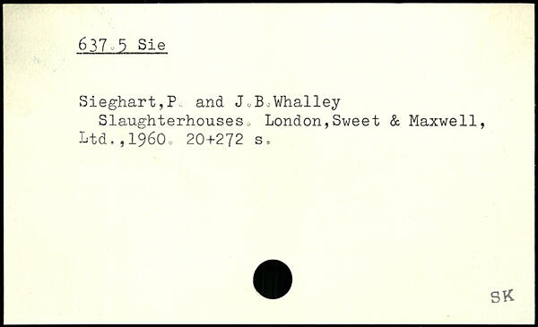 Slaughterhouses o London,Sweet & Maxwell, Ltd.,19600 20+272 s =