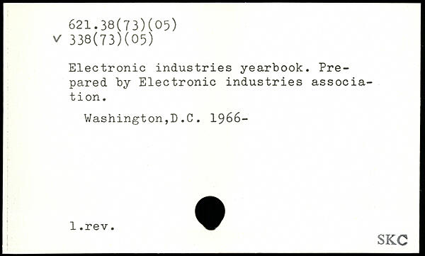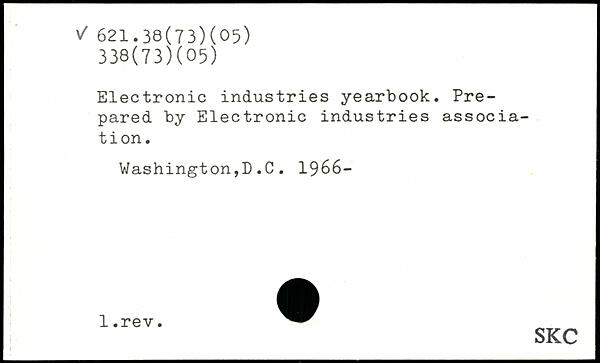 Electronic industries yearbook. Prepared by Electronic industries association. Washington,D.C. 1966- ! SKC