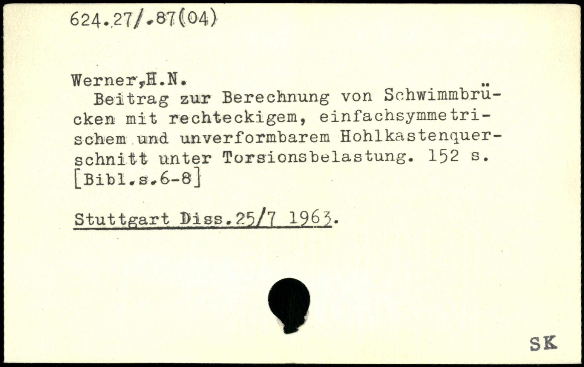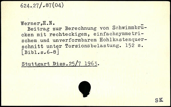 Beitrag zur Berechnung von Schwimmbrucken mit rechteckigem, einfachsymmetri-sehern und. unverformbarem Hohlkastenquerschnitt unter Torsionsbelastung.