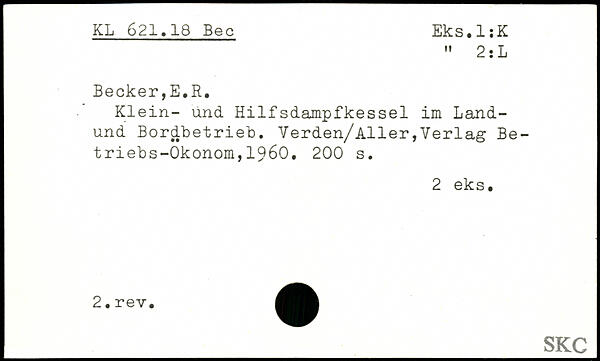 Klein- und Hilfsdampfkessel im Land-und Bordbetrieb. Verden/Aller,Verlag Betriebs-Ökonom, 1960.