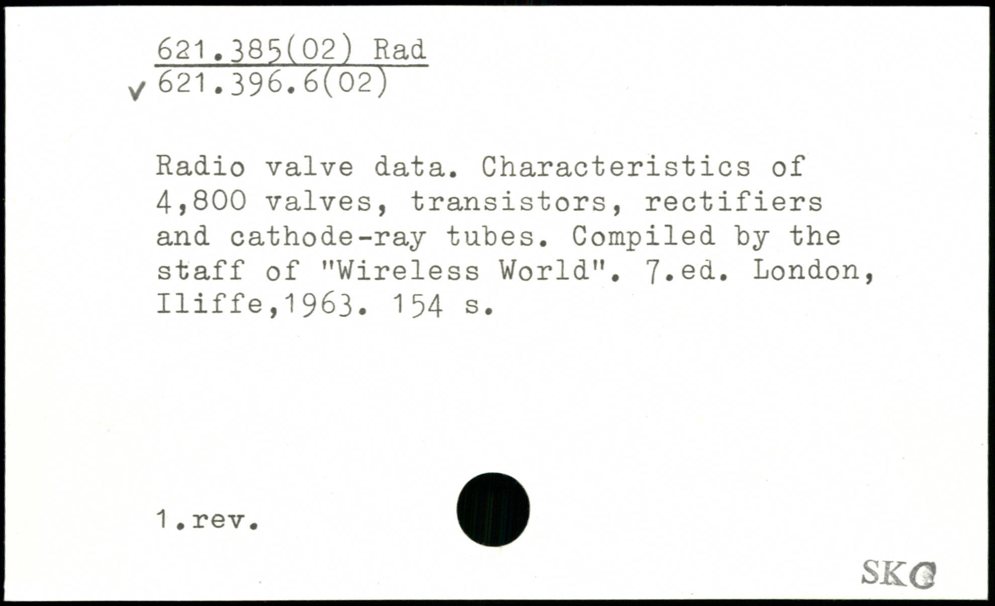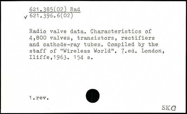 Radio valve data. Characteristics of 4,800 valves, transistors, rectifiers and cathode-ray tubes. Compiled by the staff of "Wireless World".