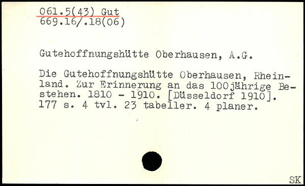 Gutehoffnungshütte Oberhausen, A.G. Die Gutehoffnungshütte Oberhausen, Rheinland. Zur Erinnerung an das 100jährige Bestehen. 1810 - 1910. [Düsseldorf 1910].