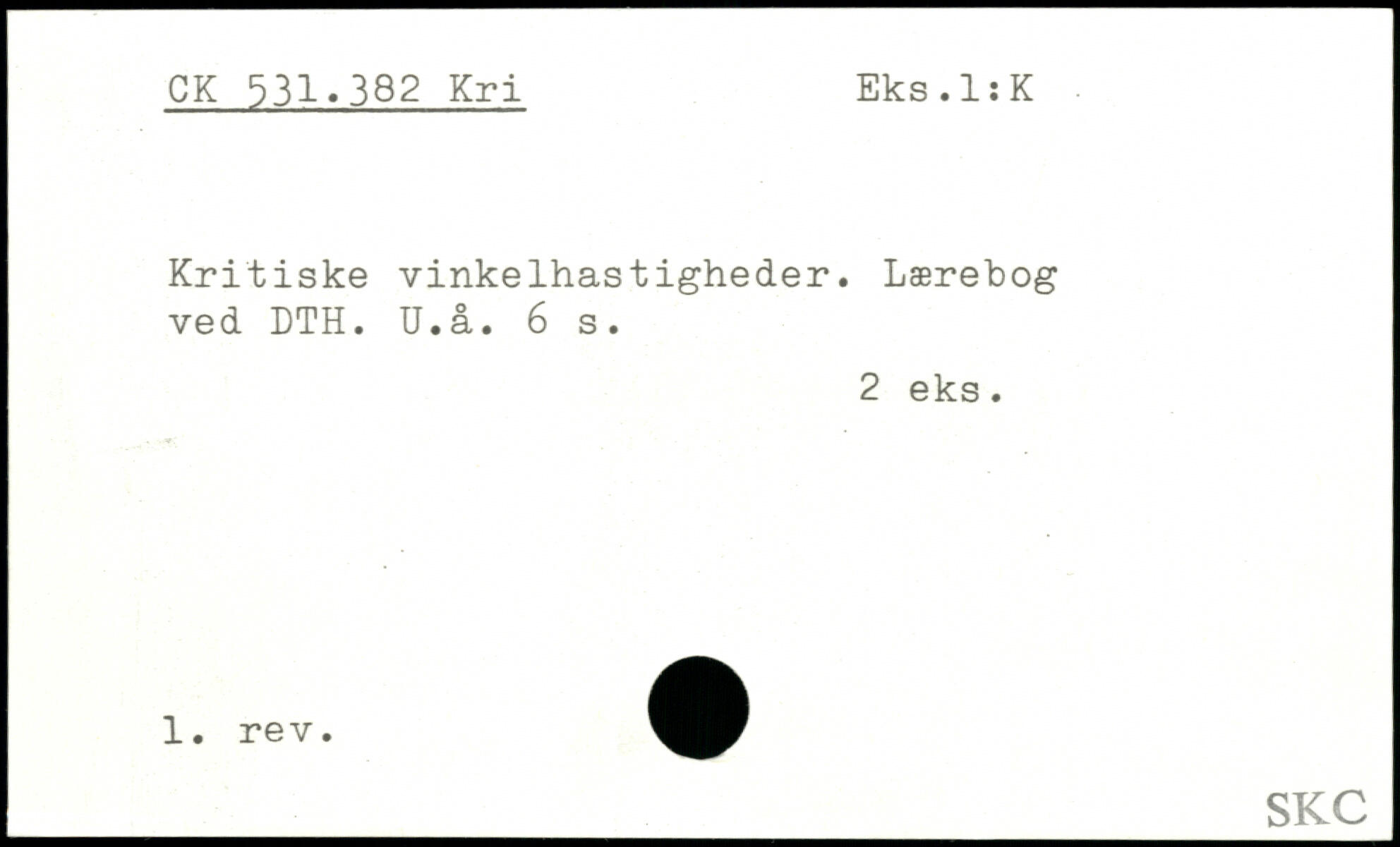 Kritiske vinkelhastigheder. Lærebog ved DTH. U.å.