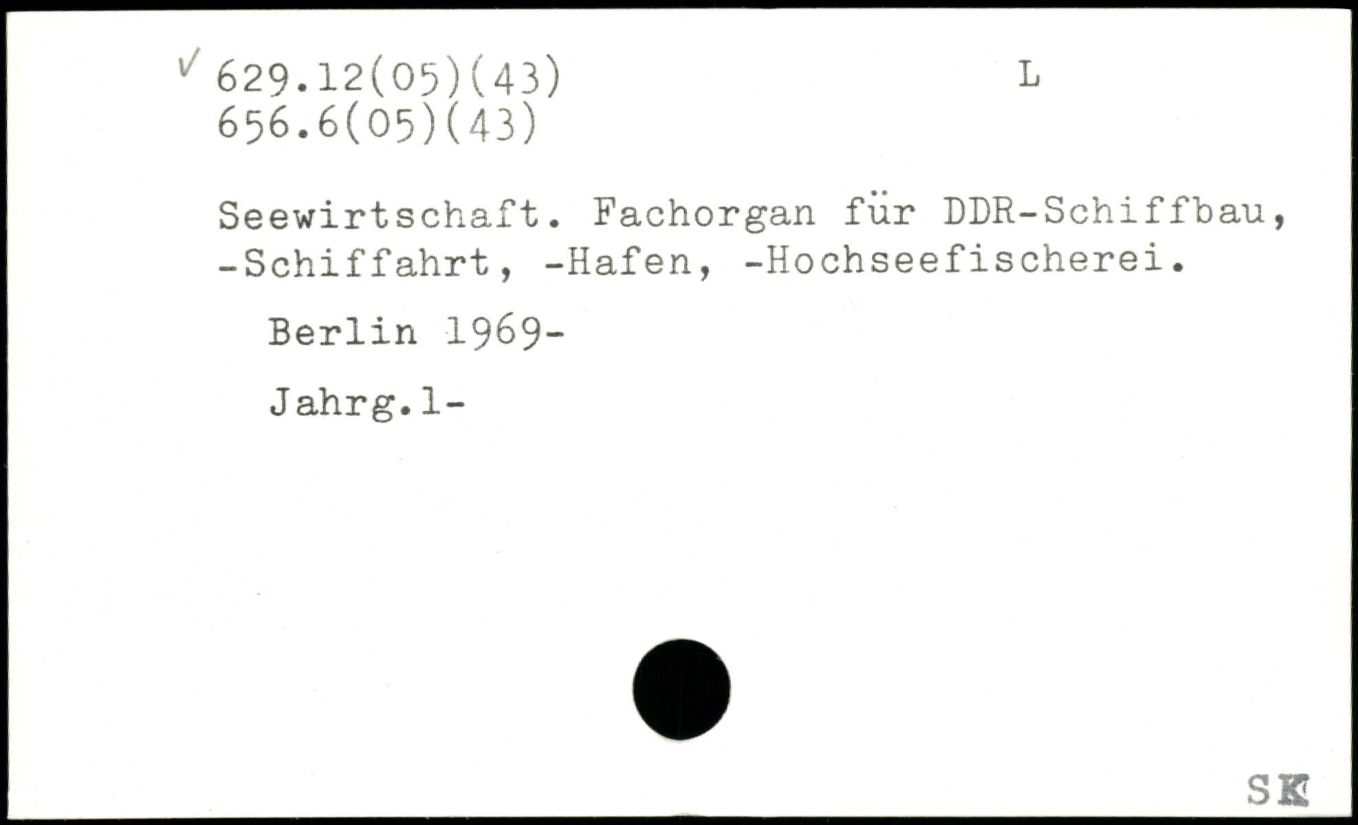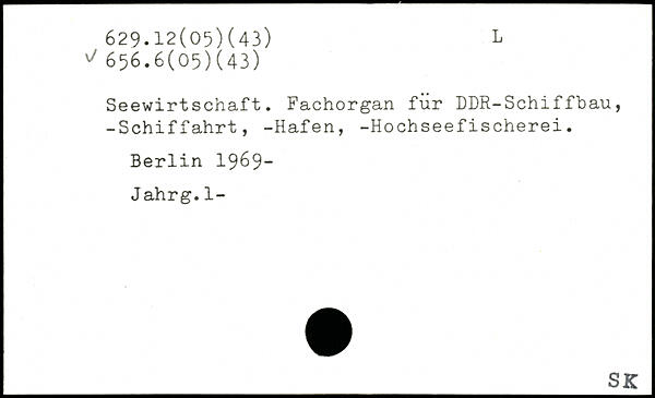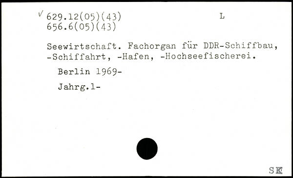 Seewirtschaft. Fachorgan für DDR-Schiffbau, -Schiffahrt, -Hafen, -Hochseefischerei.