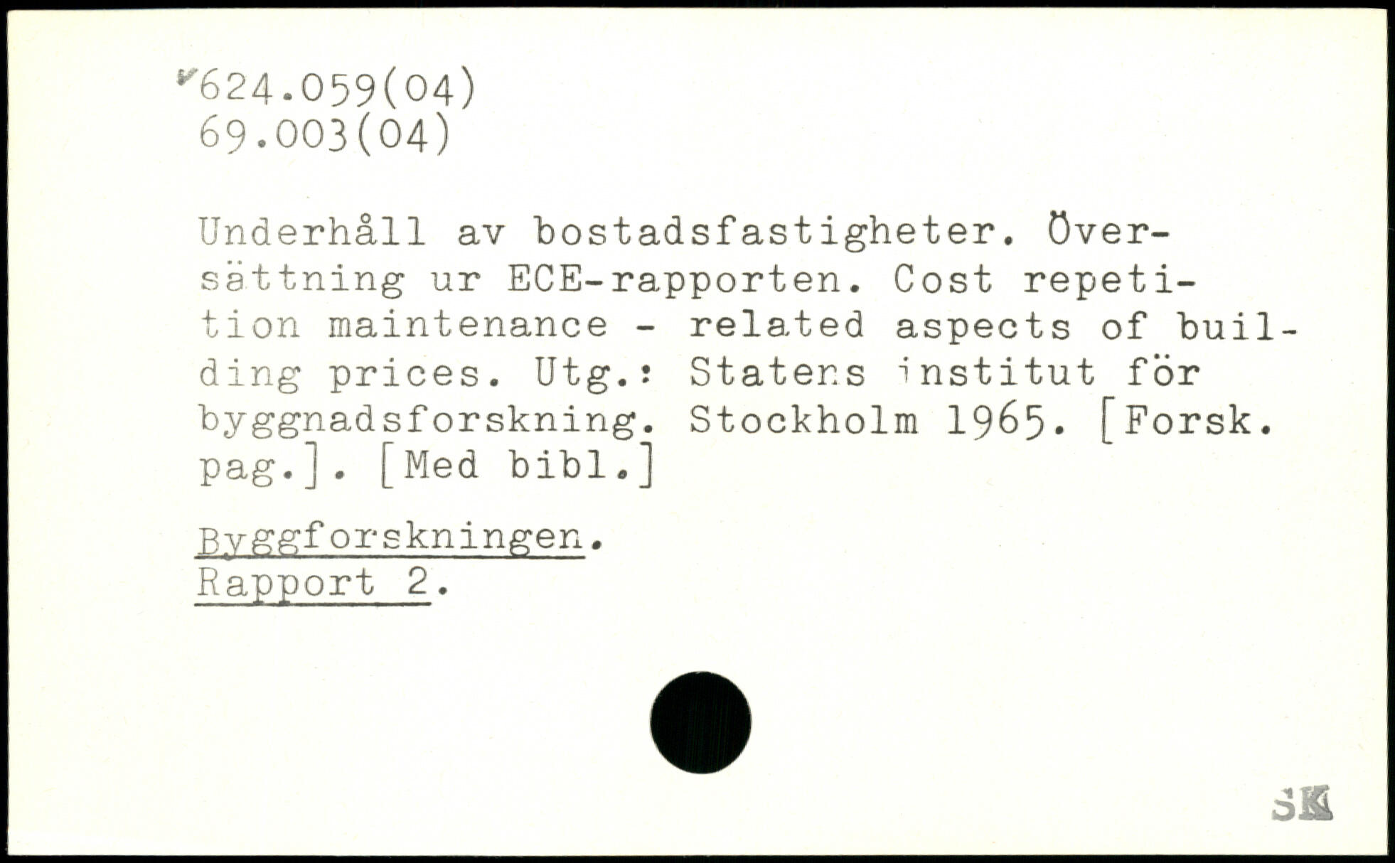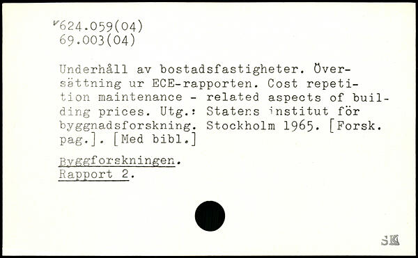 Underhåll av bostadsfastigheter, översättning ur ECE-rapporten. Cost repetition maintenance - related aspects of building prices. Utg.î Statens institut för byggnadsforskning. Stockholm 19^5. [Forsk. pag.].