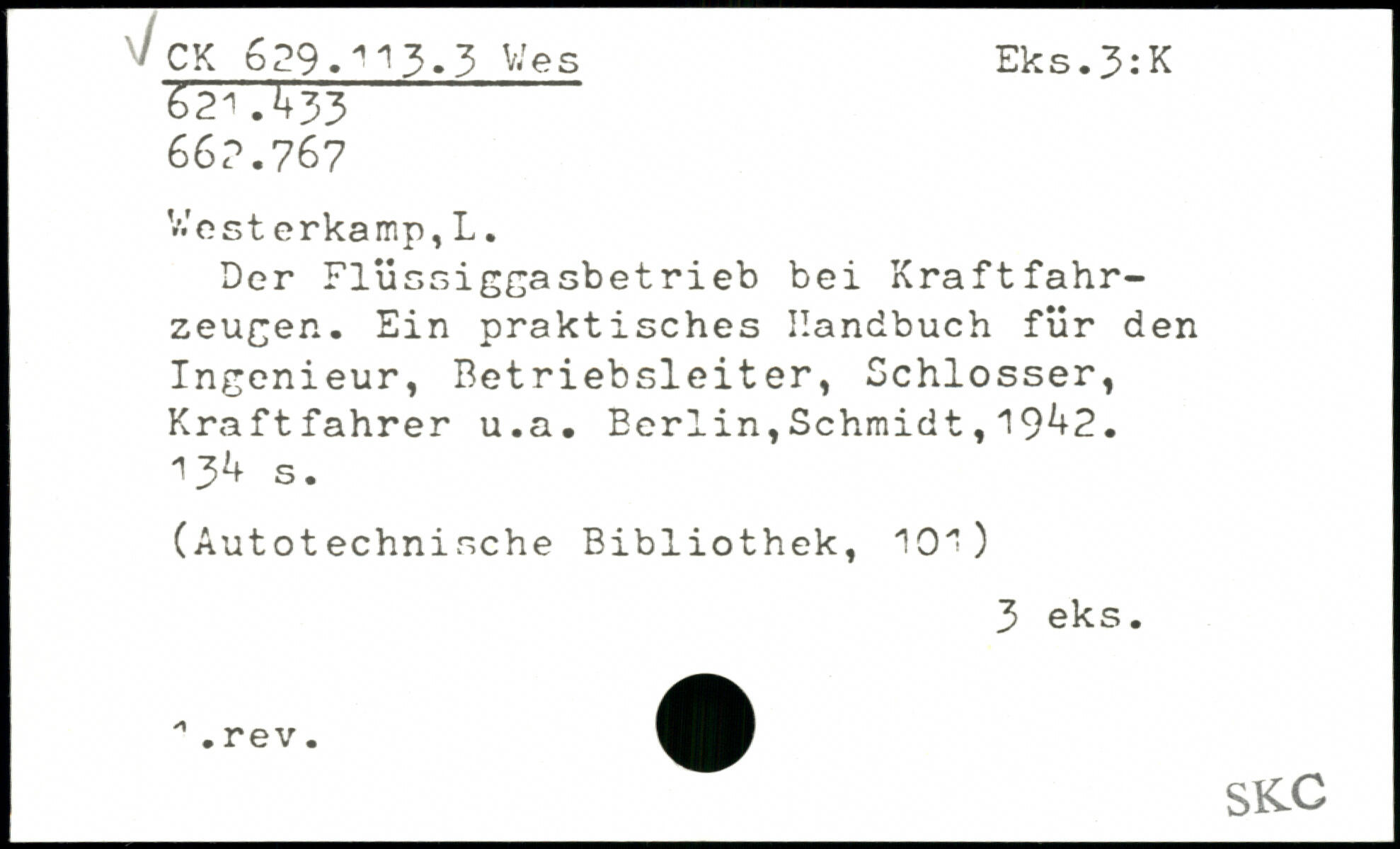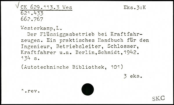 V.'ost erkamp, L. Der Flüssiggasbetrieb bei Kraftfahrzeugen. Ein praktisches Handbuch für den Ingenieur, Betriebsleiter, Schlosser, Kraftfahrer u.a. Berlin,Schmidt,19^2. 13^ s.