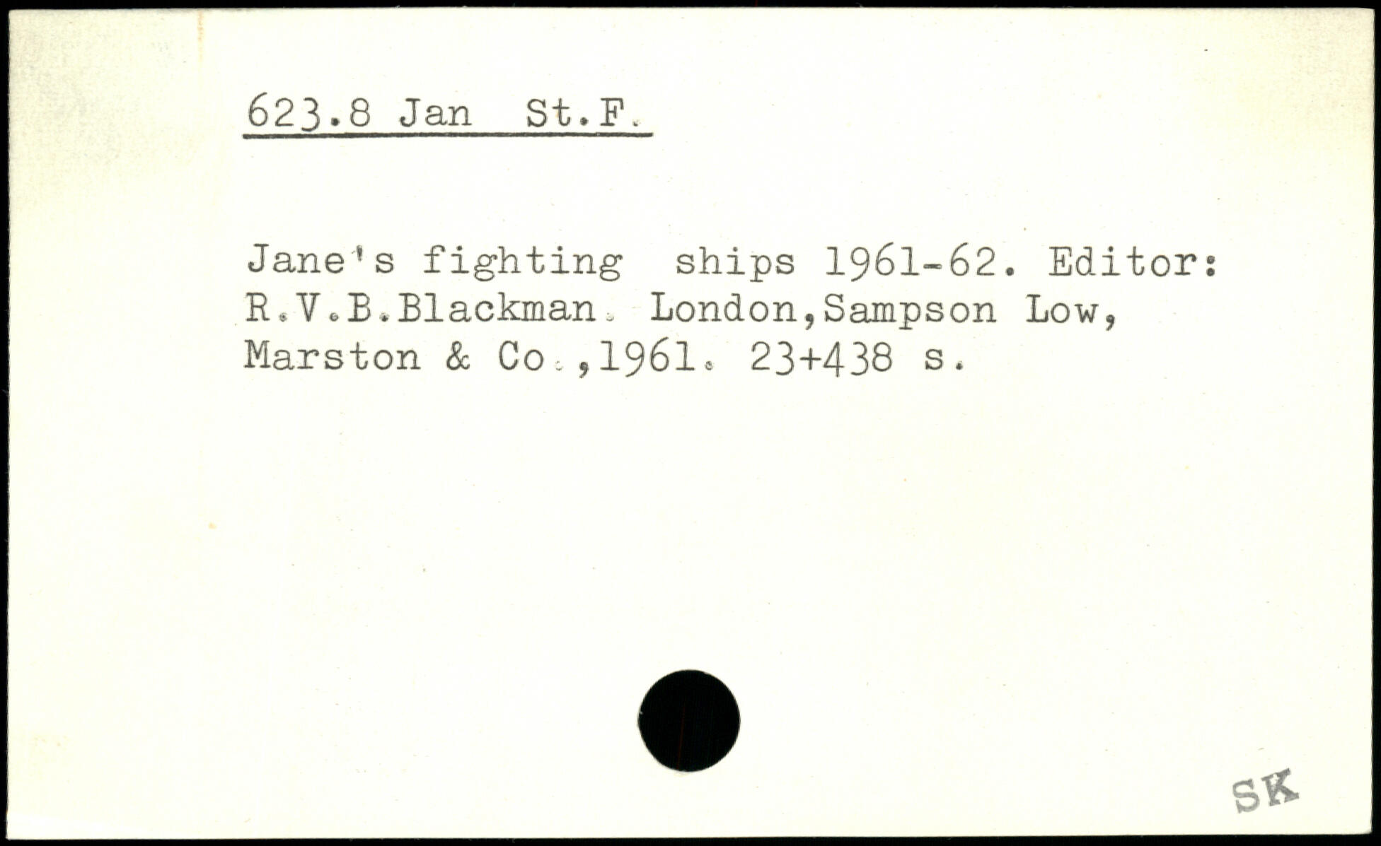 Jane’s fighting ships 1961-62. Editor: R,V.B.Blackman. London,Sampson Low, Marston & Co;,1961.