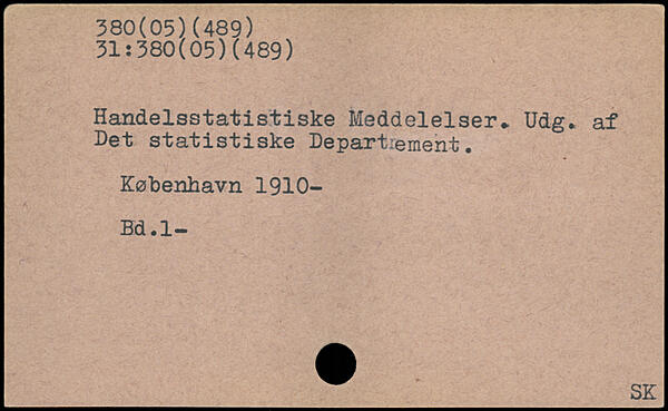 Handelsstatistiske Meddelelser,. Udg. af Det statistiske Departement.
