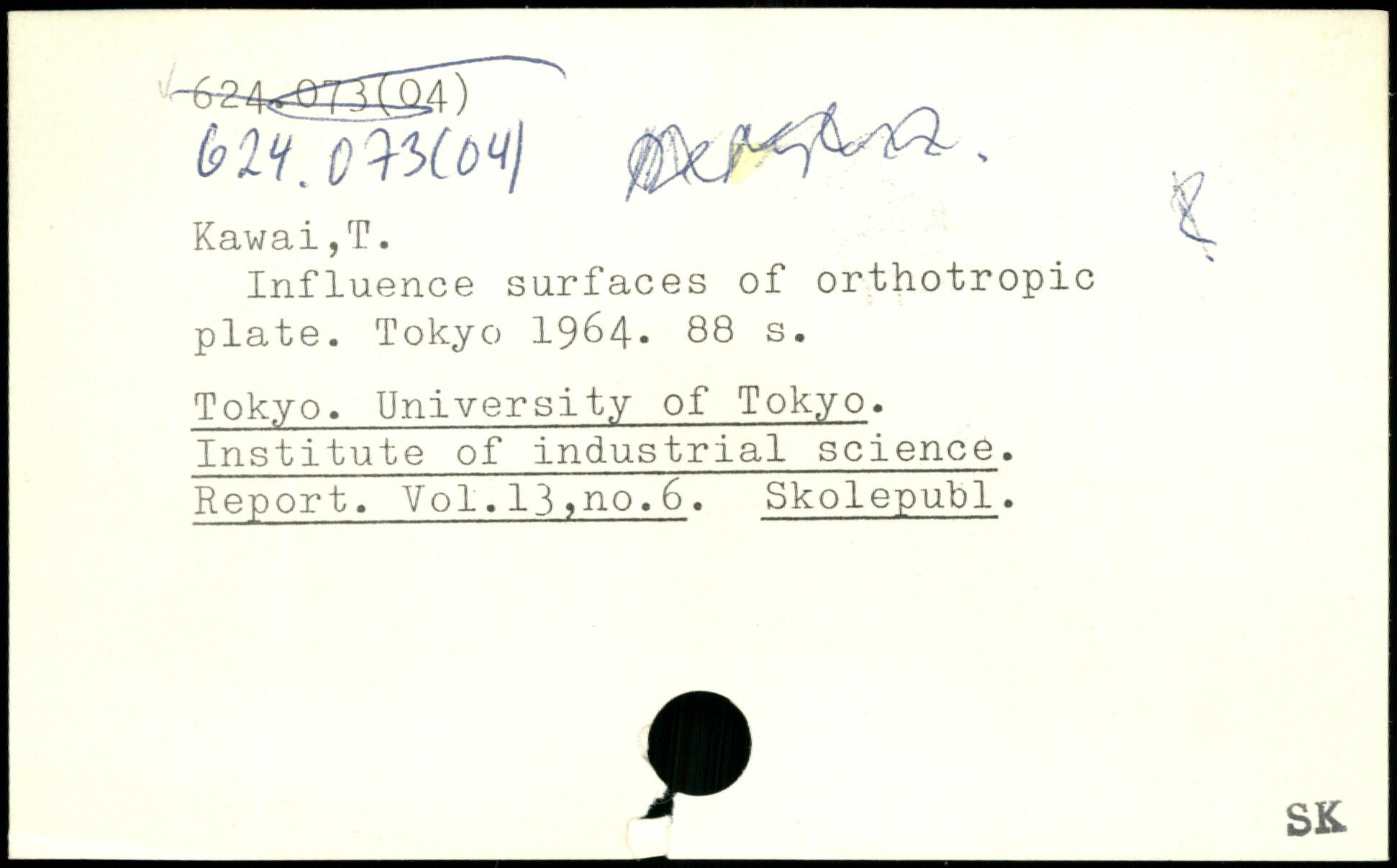 -€rS4^t2@fi ' , blH.OWon) Kawai,T. 0 Influence surfaces of orthotropic plate.
