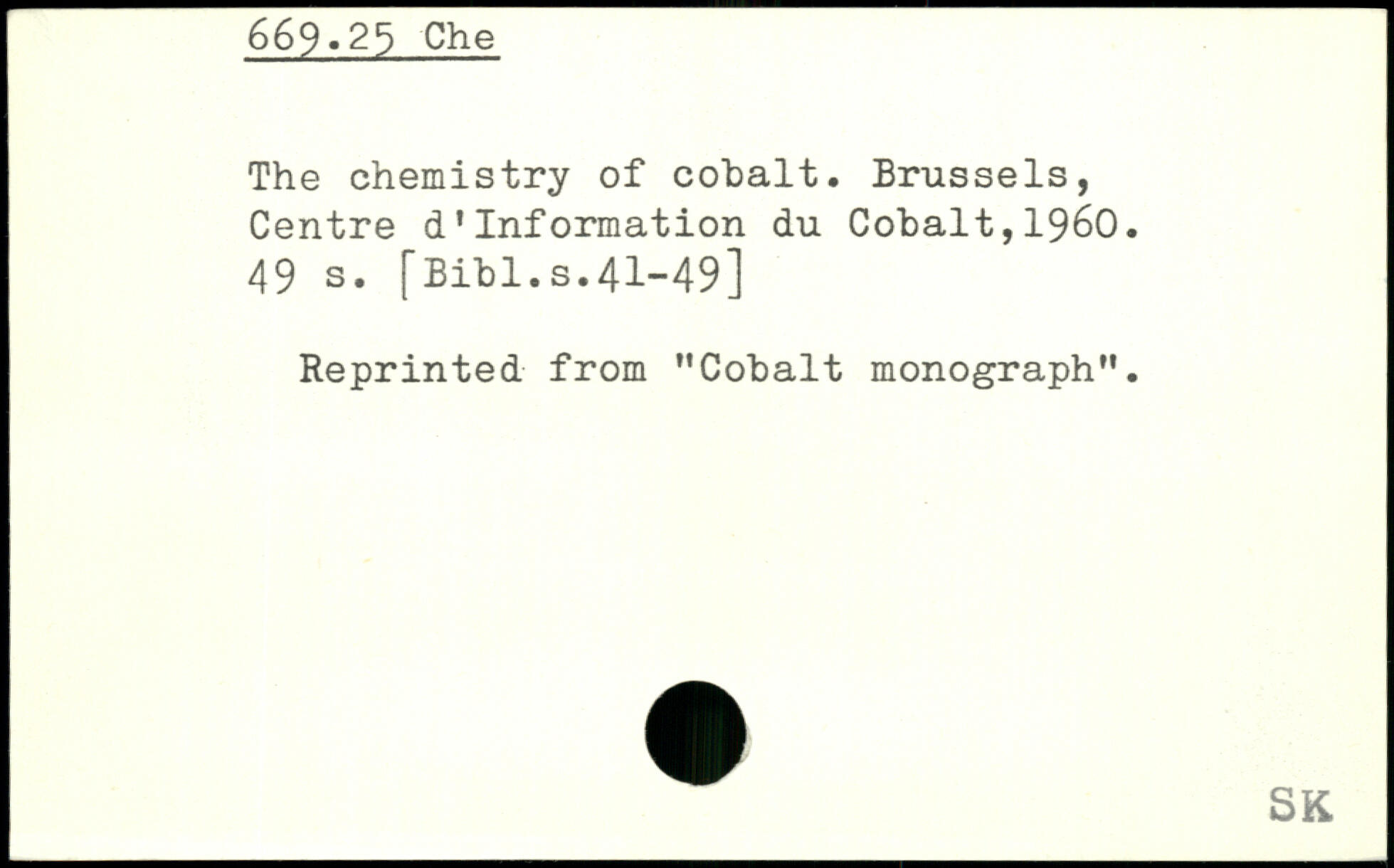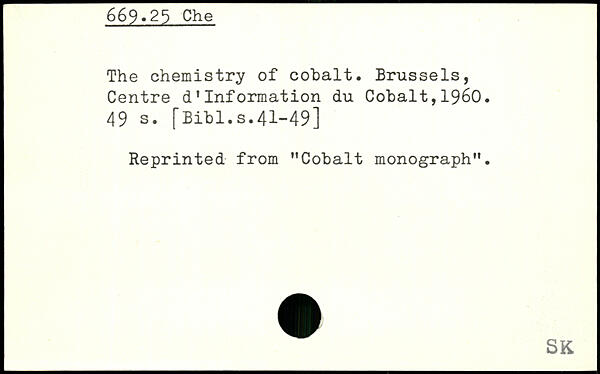The chemistry of cohalt. Brussels, Centre d'information du Cohalt,1960.