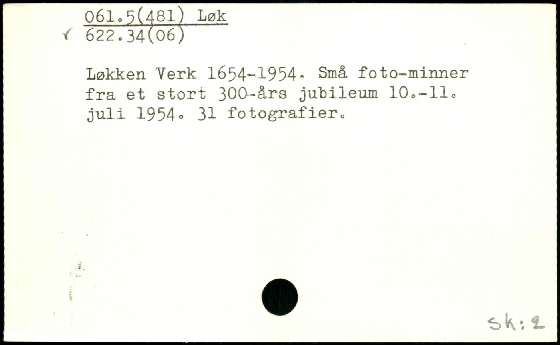 Løkken Yerk 1654-1954. Små foto-minner fra et stort 300-års jubileum lO.-llo juli 1954. 31 fotografier. i.