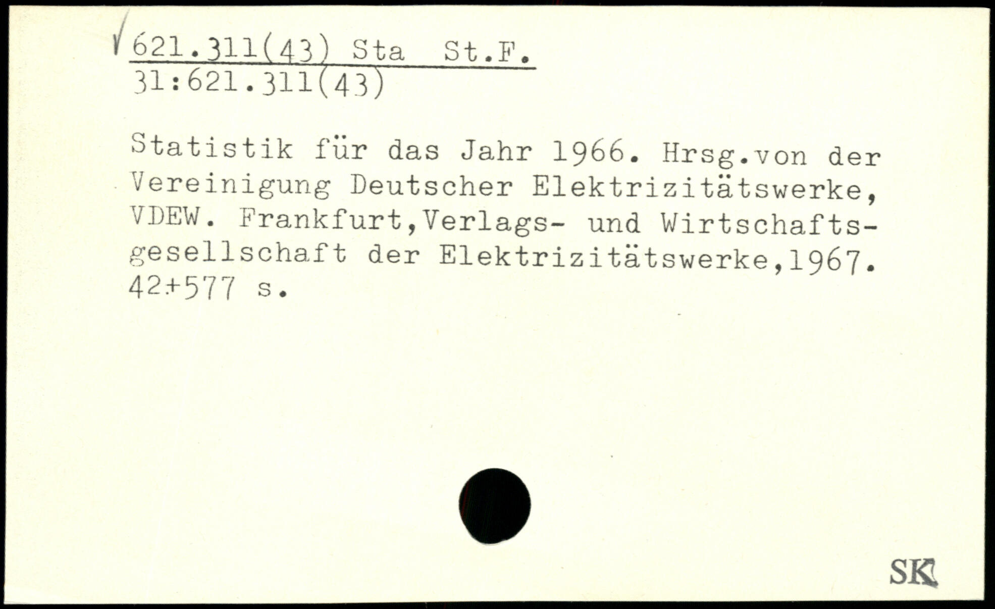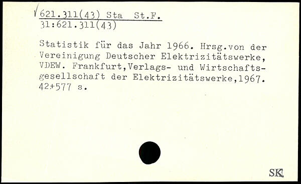 Statistik für das Jahr 1966. Hrsg.von der Vereinigung Deutscher Elektrizitätswerke, VDEW. Frankfurt,Verlags- und Wirtschaftsgesellschaft der Elektrizitätswerke,1967. 42.