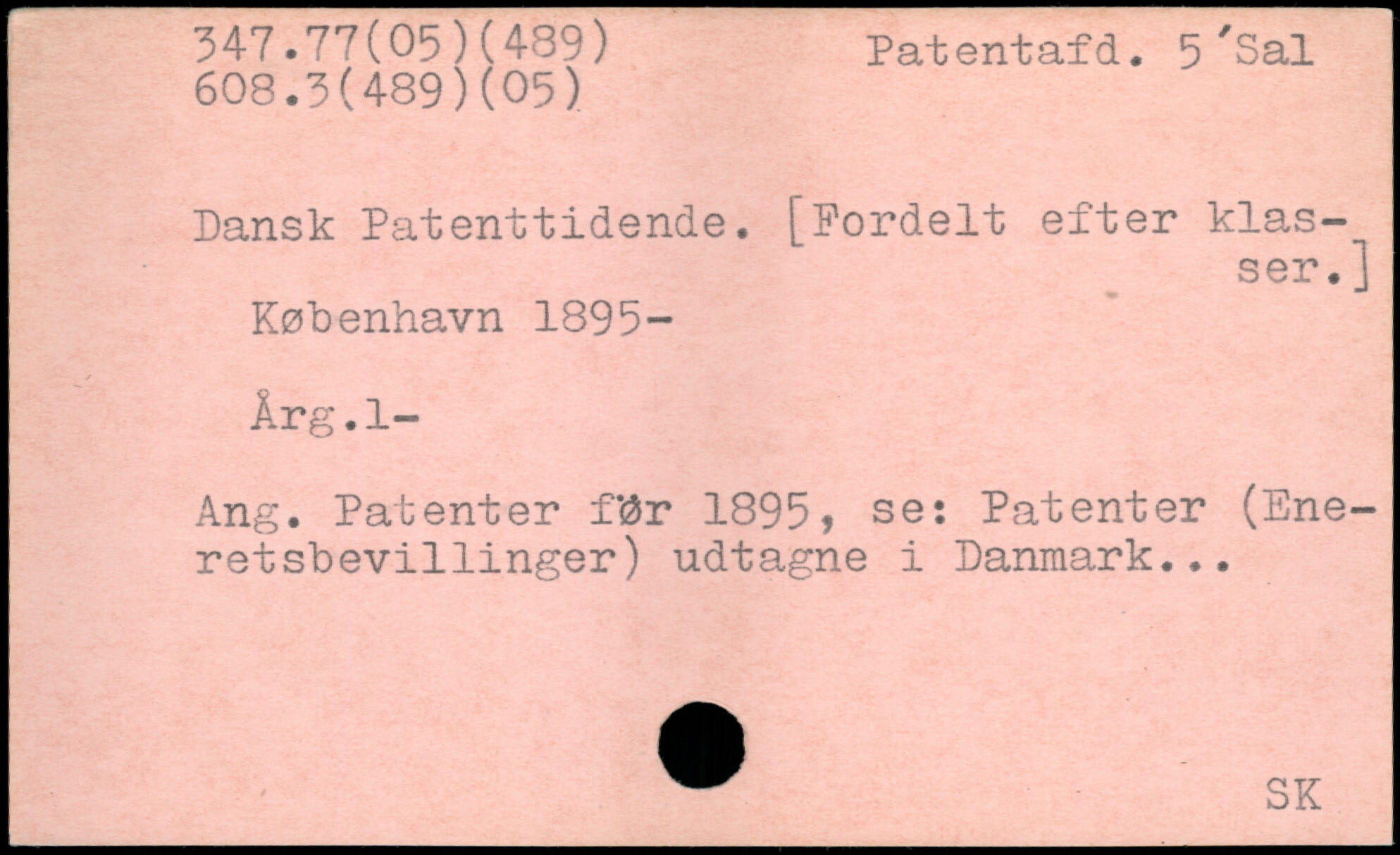 Dansk Patenttidende. [Fordelt efter klas-^ ser. j