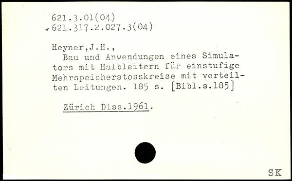 Heyner, J. H. , Bau und Anwendungen eines Simulators mit Halbleitern für einstufige Mehrspeicherstosskreise mit verteilten Leitungen.