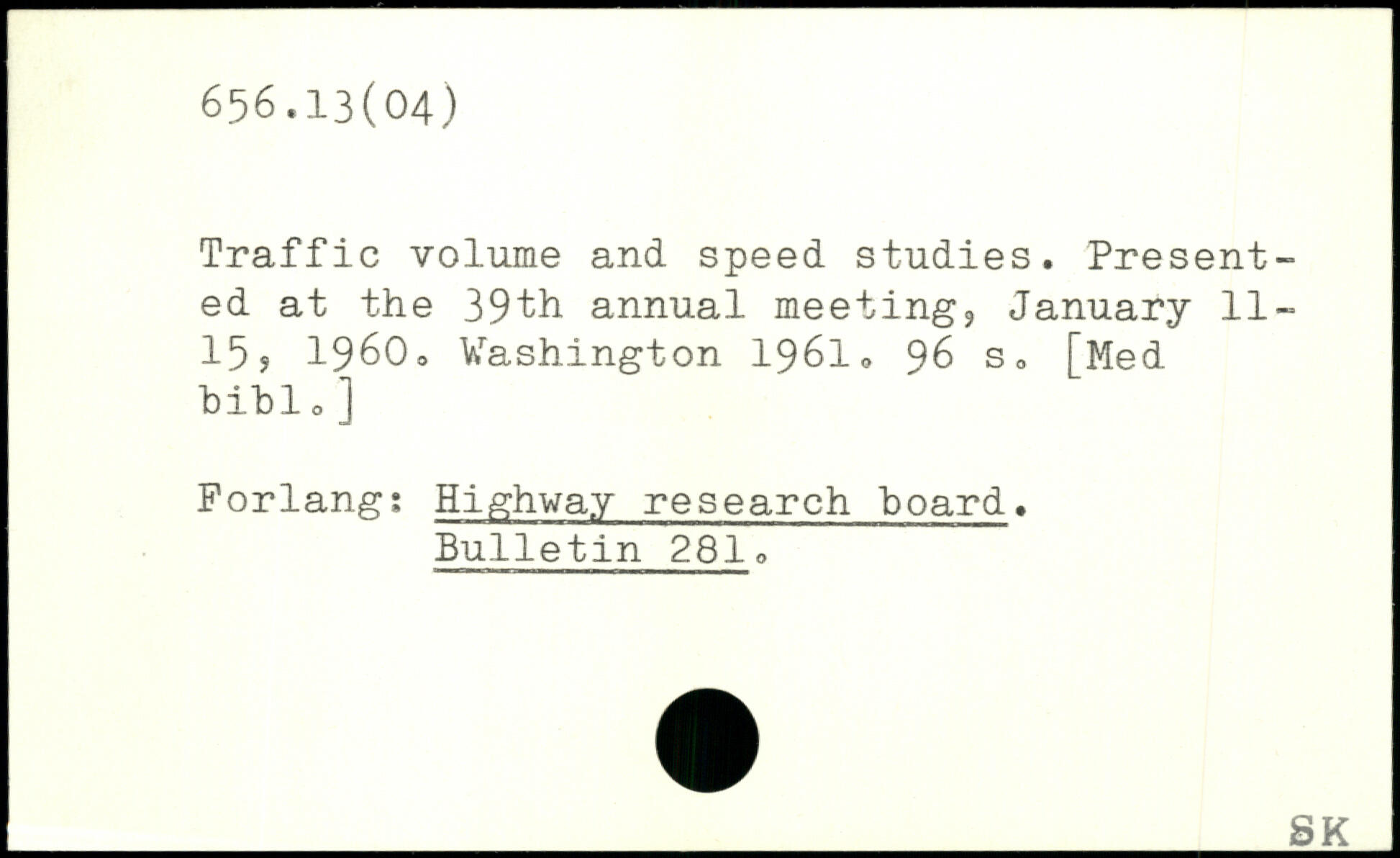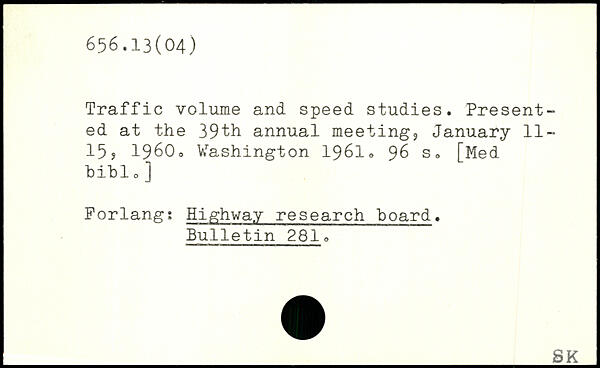 Traffic volume and speed studies. Presented at the 39th annual meeting, January 11-15> 1960