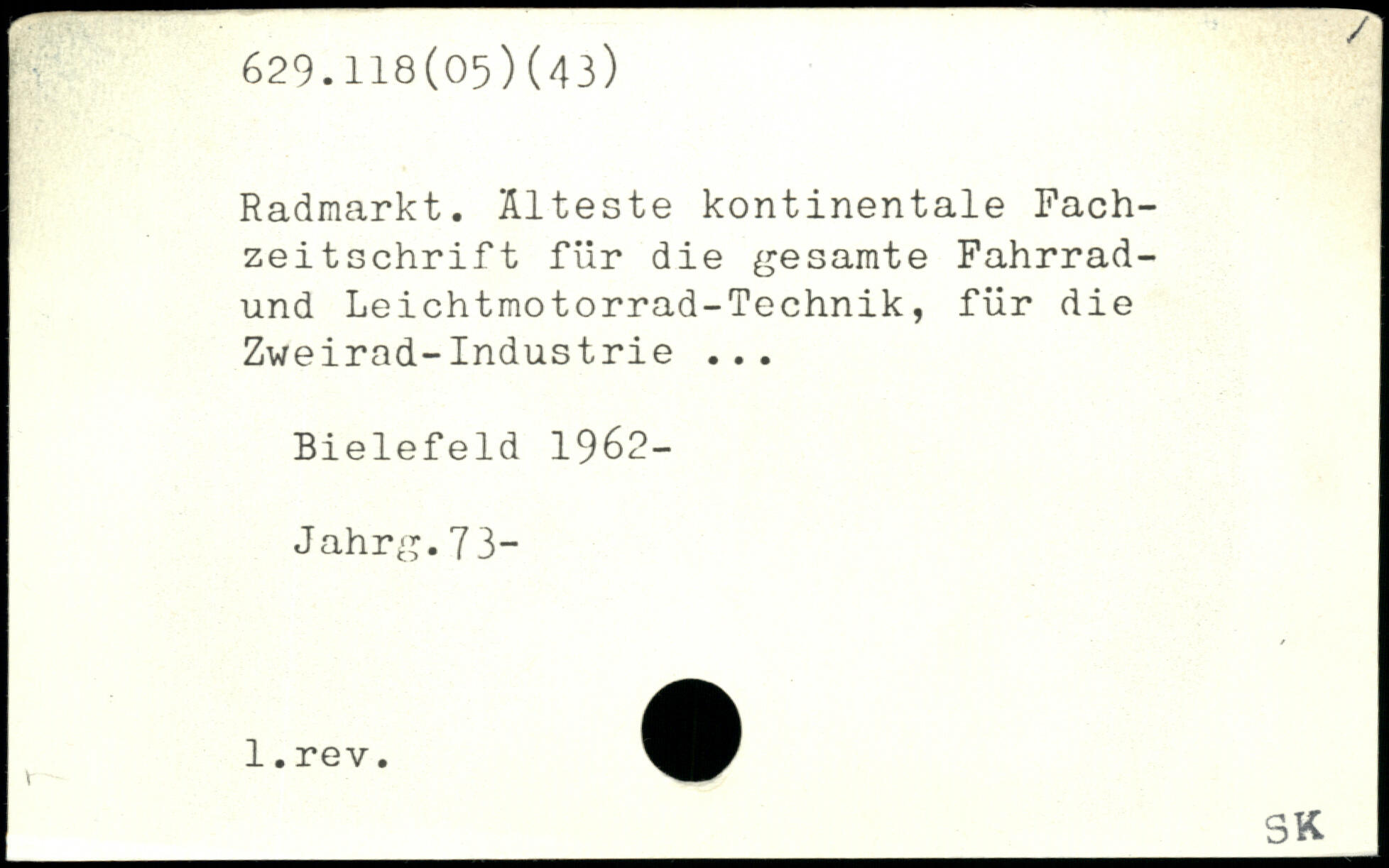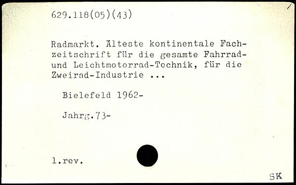 Radmarkt. Älteste kontinentale Fachzeitschrift für die gesamte Fahrrad-und Leichtmotorrad-Technik, für die Zweirad-Industrie ... Bielefeld 1962- Jahrg.73-