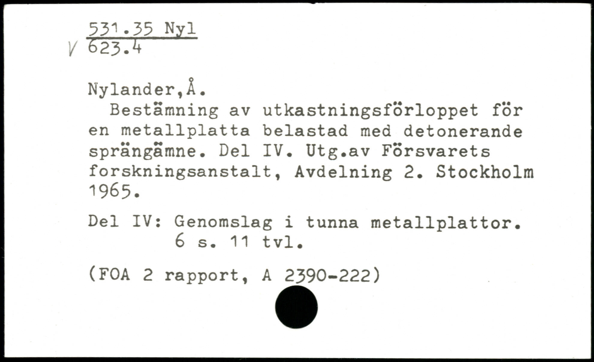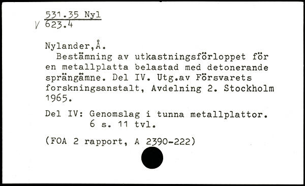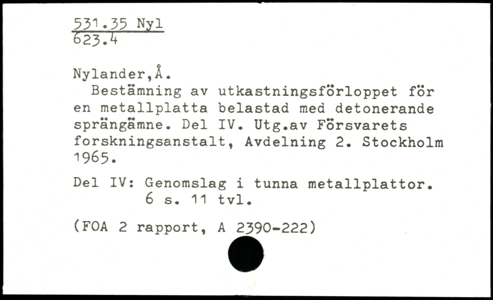 Bestämning av utkastningsförloppet för en metallplatta belastad med detonerande sprängämne. Del IV. Utg.av Försvarets forskningsanstalt, Avdelning 2.
