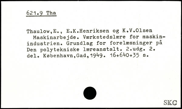 Thaulow,E., E.K.Henriksen og K.V.Olsen Maskinarbejde. Værkstedslære for maskinindustrien. Grundlag for forelæsninger på Den polytekniske læreanstalt.