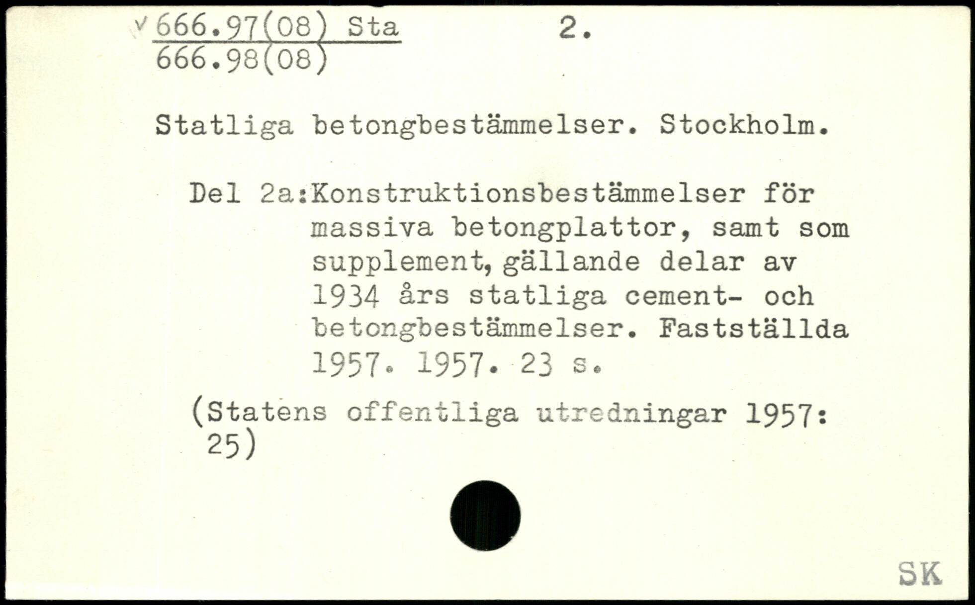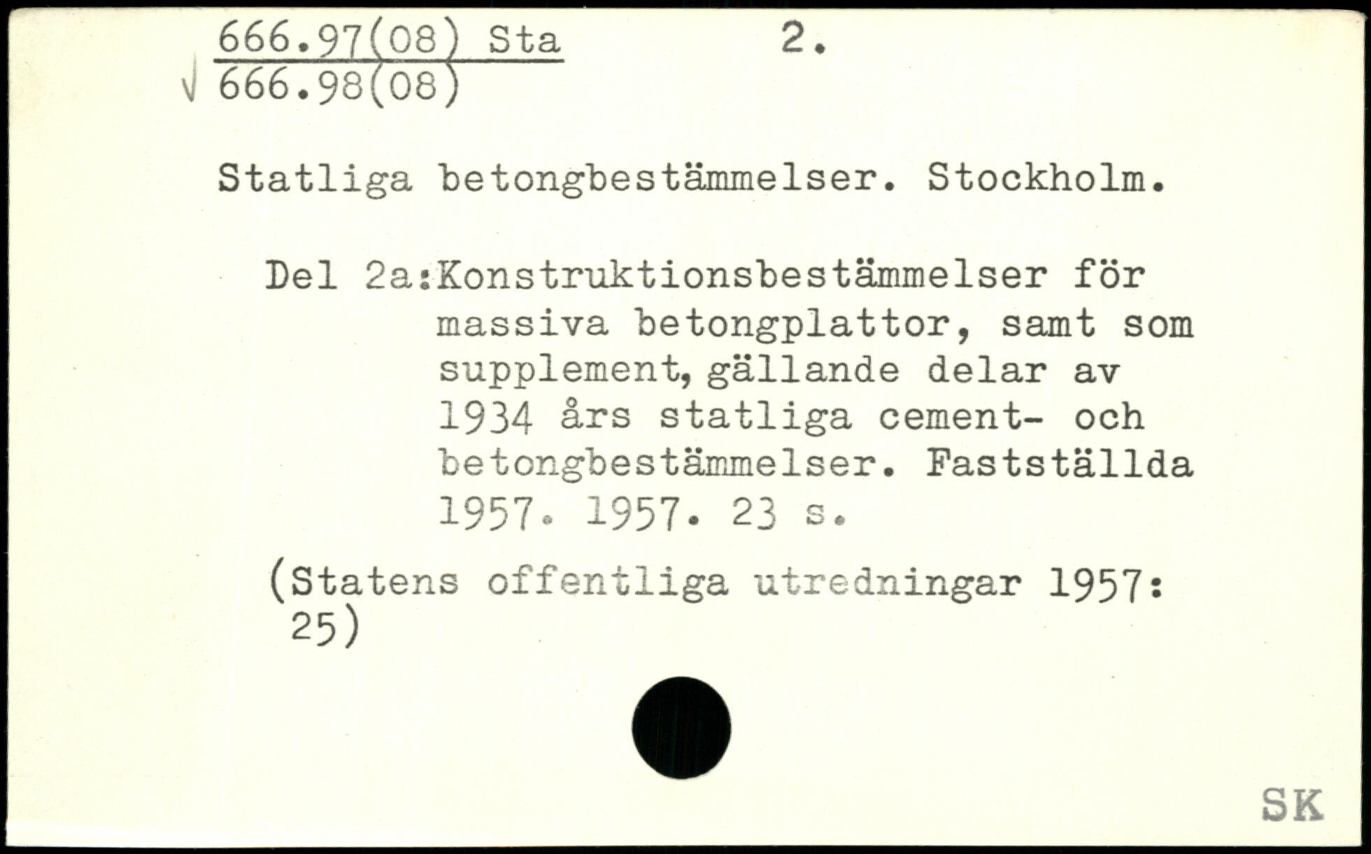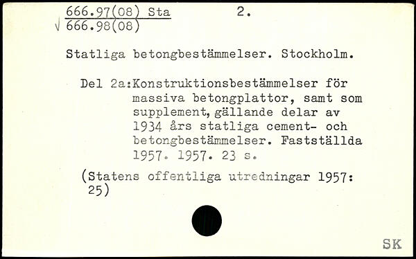 Statliga betongbestämmelser. Stockholm. Del 2a:Konstruktionsbestämmelser för massiva betongplattor, samt som supplement, gällande delar av 1934 års statliga cement- och betongbestämmelser. Fastställda 1957, 1957-