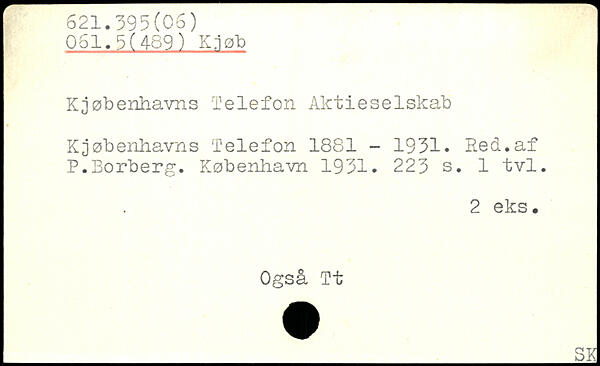Kjøbenhavns Telefon Aktieselskab Kjøbenhavns Telefon 1881 - 1931. Red.af P.Borberg. Købenlmvn 1931.