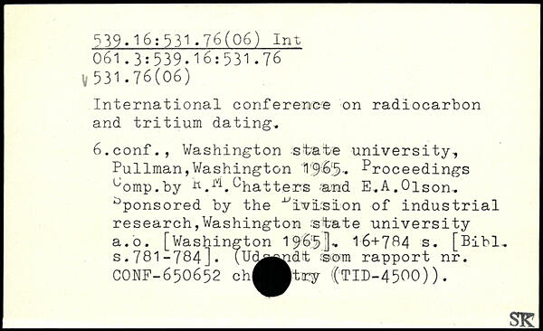 International conference on radiocarbon and tritium dating. 6.conf., Washington state university, Pullman