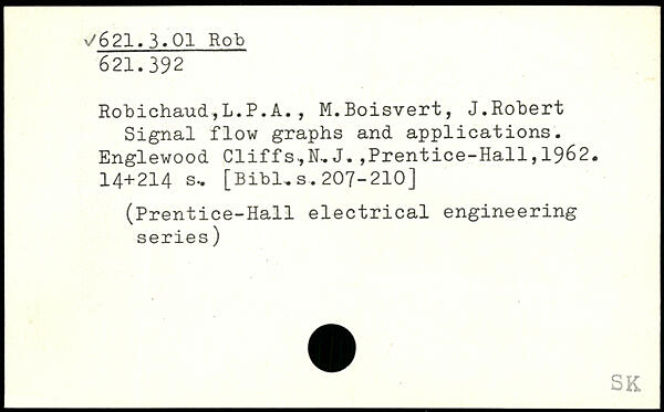 Robichaud,L.P.A., M.Boisvert, J.Robert Signal flow graphs and applications. Englewood Cliffs,N