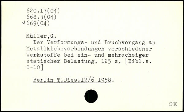 Der Verformungs- und Bruchvorgang an MetallklebeVerbindungen verschiedener Werkstoffe bei ein- und mehrachsiger statischer Belastung.