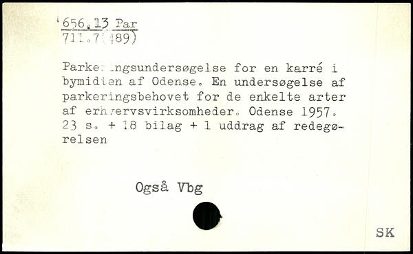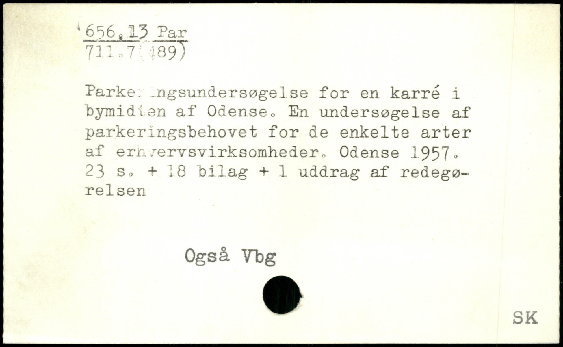 Parke _ngsundersøgelse for en karré i bymidten af Odense, En undersøgelse af parkeringsbehovet for de enkelte arter af erhvervsvirksomheder, Odense 1957