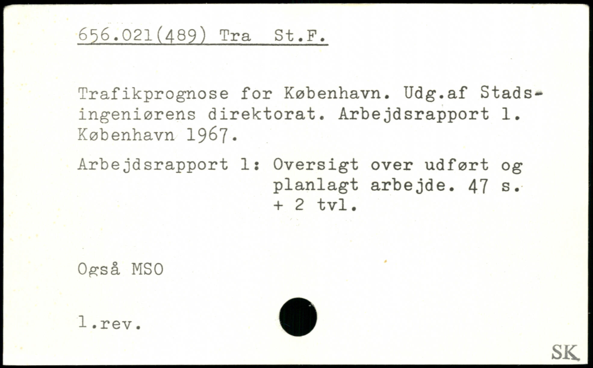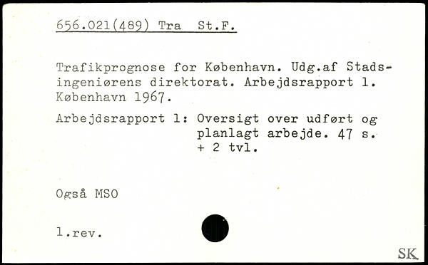 Trafikprognose for København. Udg.af Stadsingeniørens direktorat. Arbejdsrapport 1.